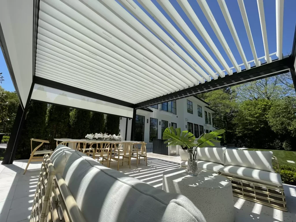 Bioklimatik pergola, hareketli alüminyum lamellerden oluşan, açılıp kapanabilen çatı sistemleridir. Bu sistemler; güneş ışığını, yağmuru ve rüzgârı kontrol ederek yaşam alanlarını daha konforlu hale getirir.